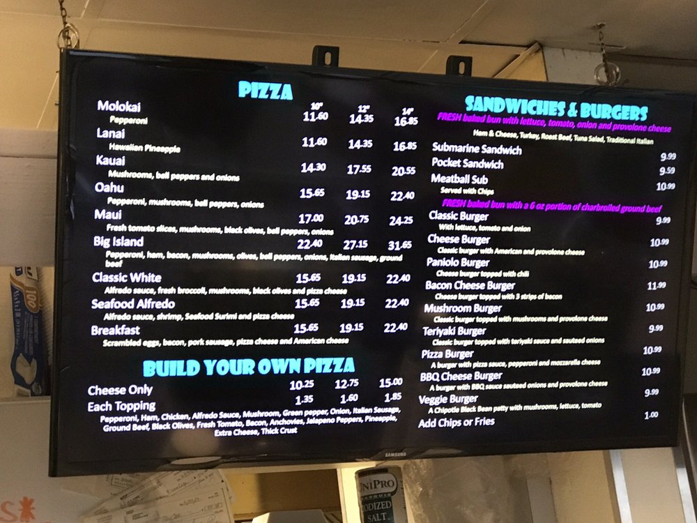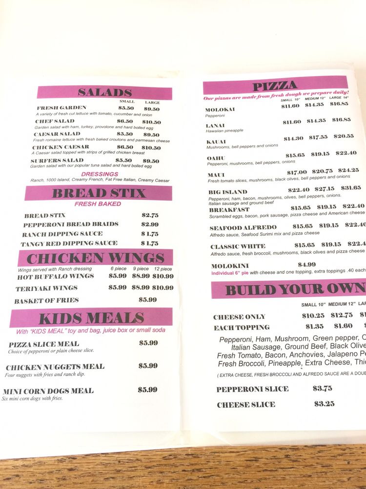Introducing Molokai Pizza Cafe, located in Kaunakakai, Hawaii, this casual yet classy pizza joint offers a wide range of menu options. From hand-fabricated pizzas to basic salads, entrees, sandwiches, and burgers, they cater to a variety of tastes. Customers can also enjoy daily specials and happy hour specials in a family-friendly atmosphere. The restaurant is known for its friendly service and quick turnaround time, making it a popular choice for locals and visitors alike. With plenty of parking and both sit-down and takeout options available, Molokai Pizza Cafe provides a convenient dining experience. The menu features many vegetarian options, with gluten-free options available upon request. Whether you're looking for a quick, tasty meal or a relaxed dining experience, Molokai Pizza Cafe has something for everyone.
